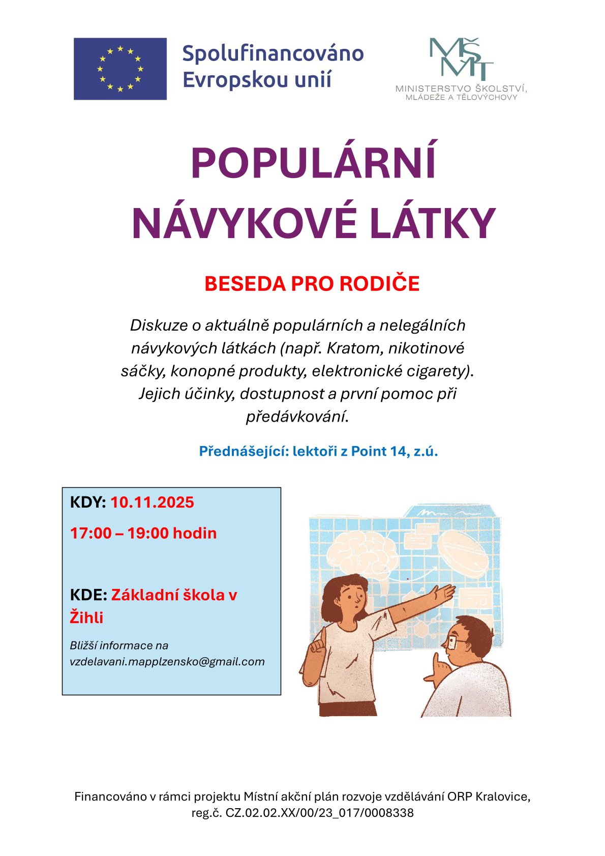 Od 17:00 proběhne beseda pro rodiče na téma: Populární návykové látky.